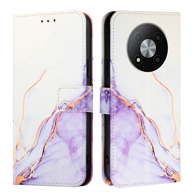Funda de Cuero con Tapa para ZTE Blade A73 5G Pt003 con Patrón Mármol (Blanco y Morado)