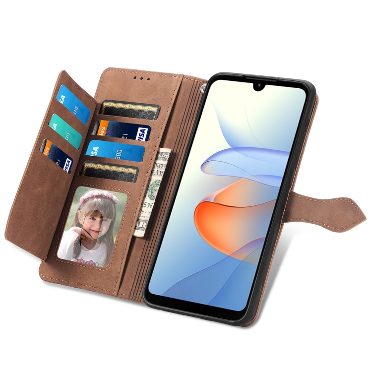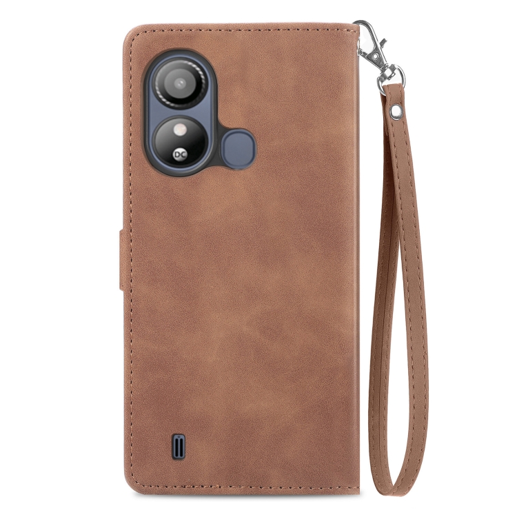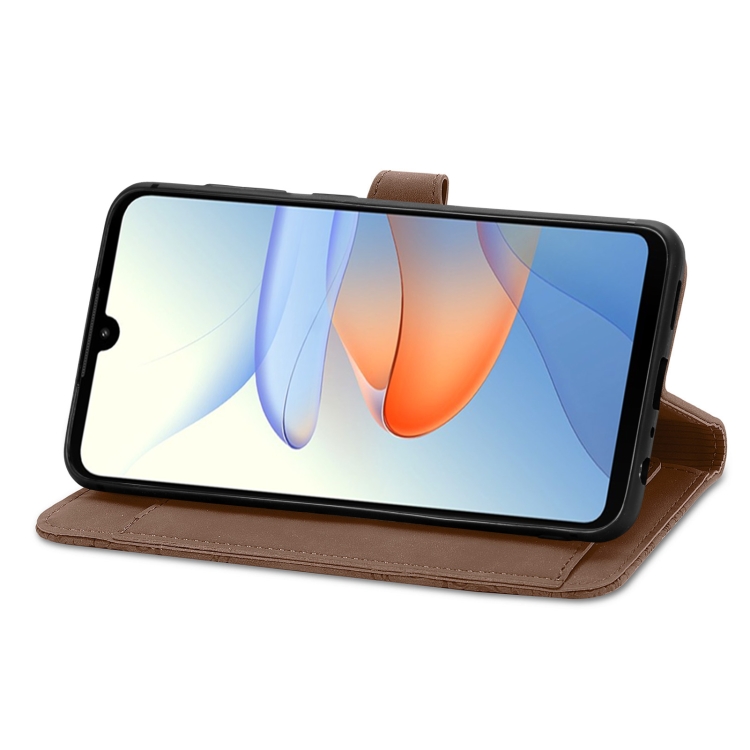 Funda de Cuero para ZTE Blade L220 con Cremallera y Flores en Relieve (Marrón)