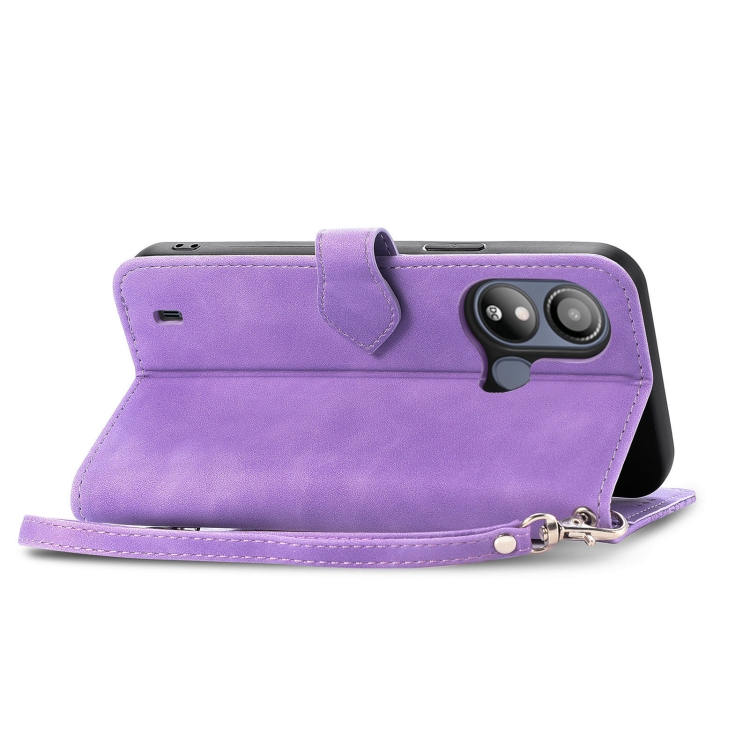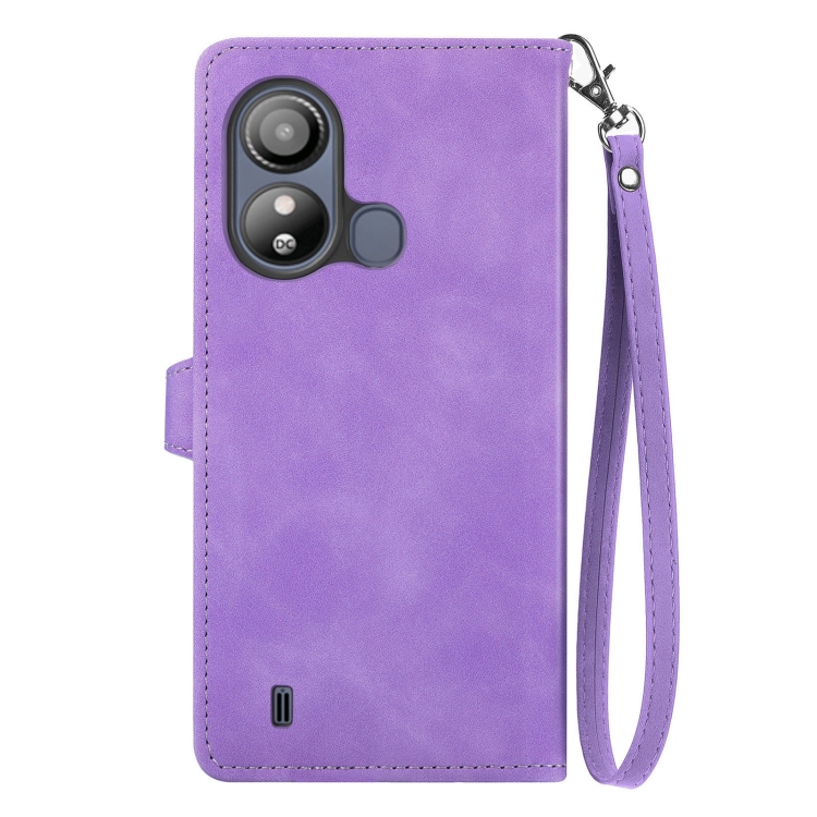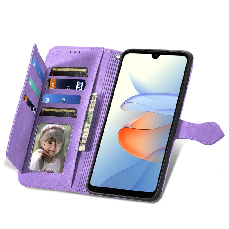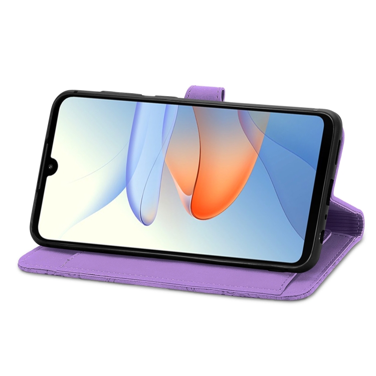 Funda de Cuero para ZTE Blade L220 con Cremallera y Flores en Relieve (Púrpura)