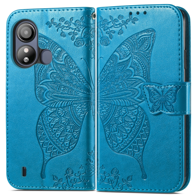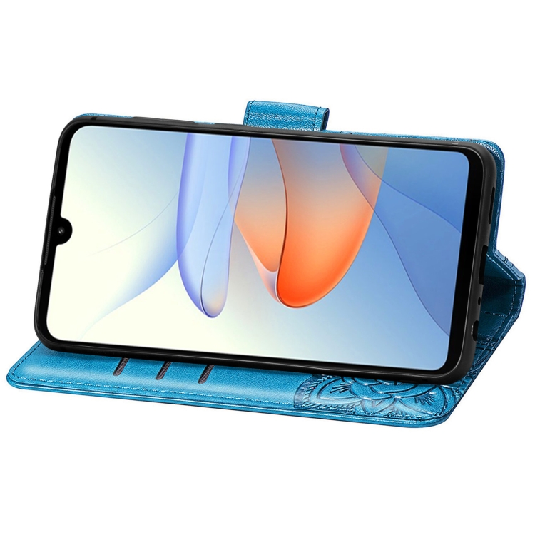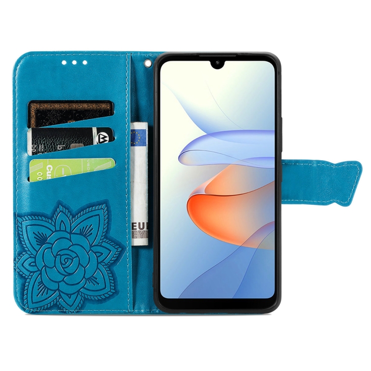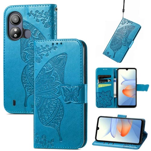Funda para ZTE Blade L220 de Cuero con Relieve de Flor y Mariposa (Azul)