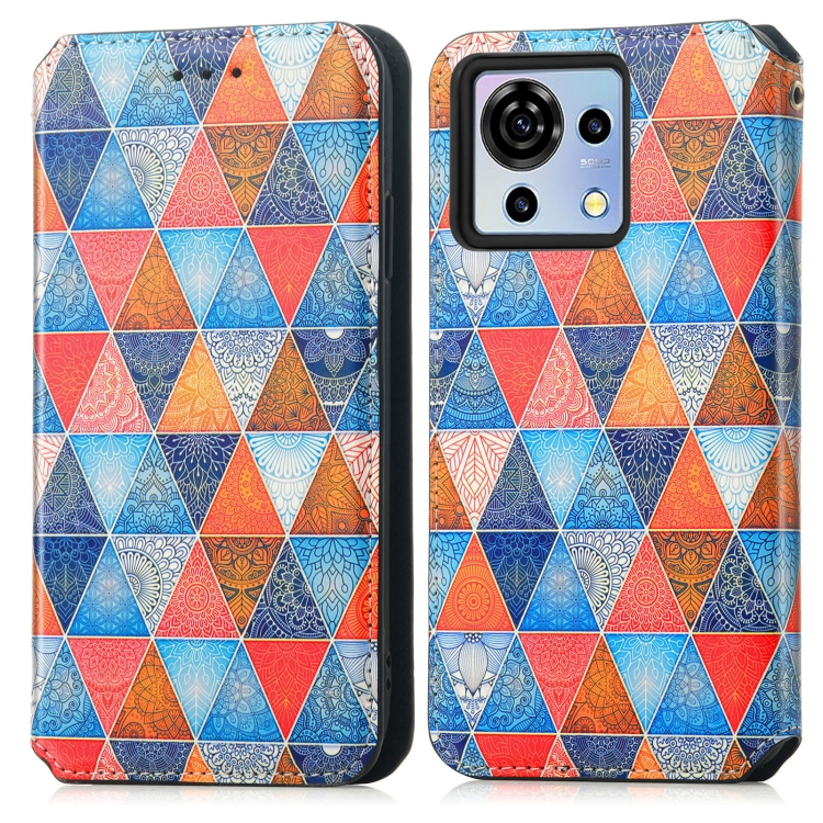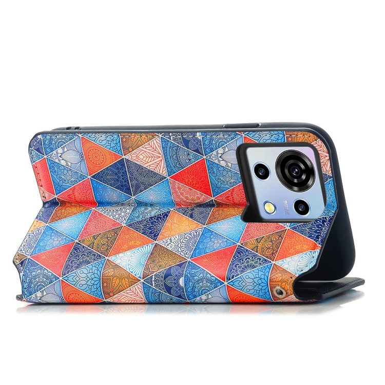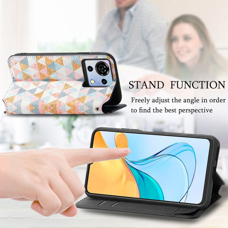 Funda de Cuero Magnética para ZTE Blade V50 Vita Caseneo con Diseño Rhombus Mandala