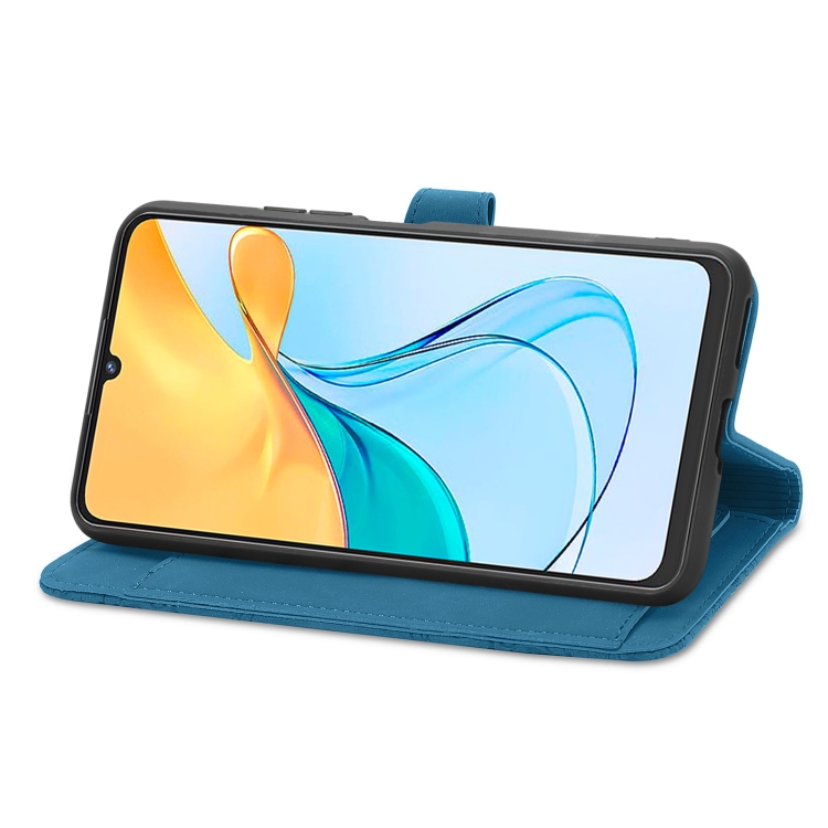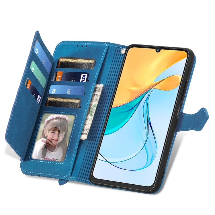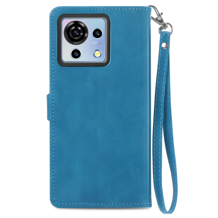 Funda para ZTE Blade V50 Vita de Cuero con Cremallera y Flores en Relieve (Azul)
