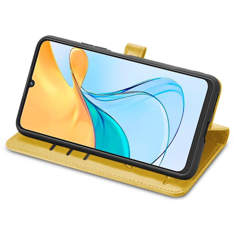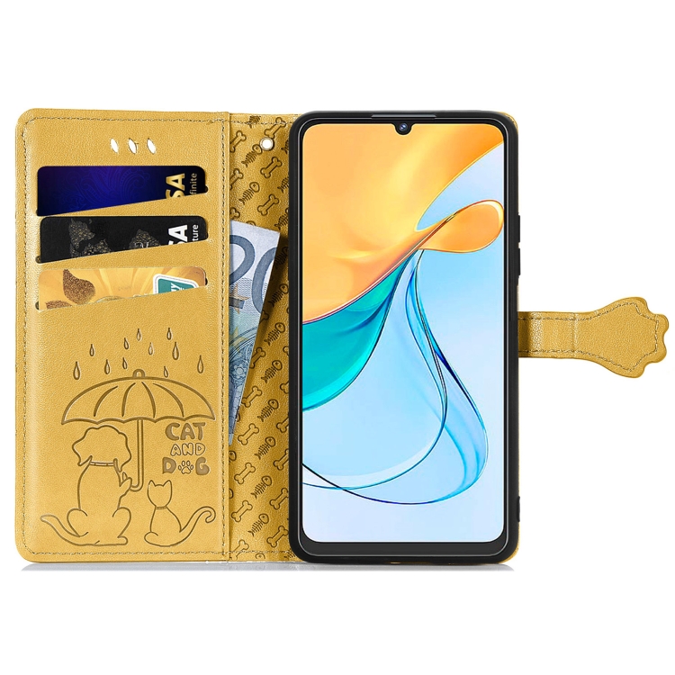 Funda para ZTE Blade V50 Vita de Cuero con Relieve de Gato y Perro (Amarillo)