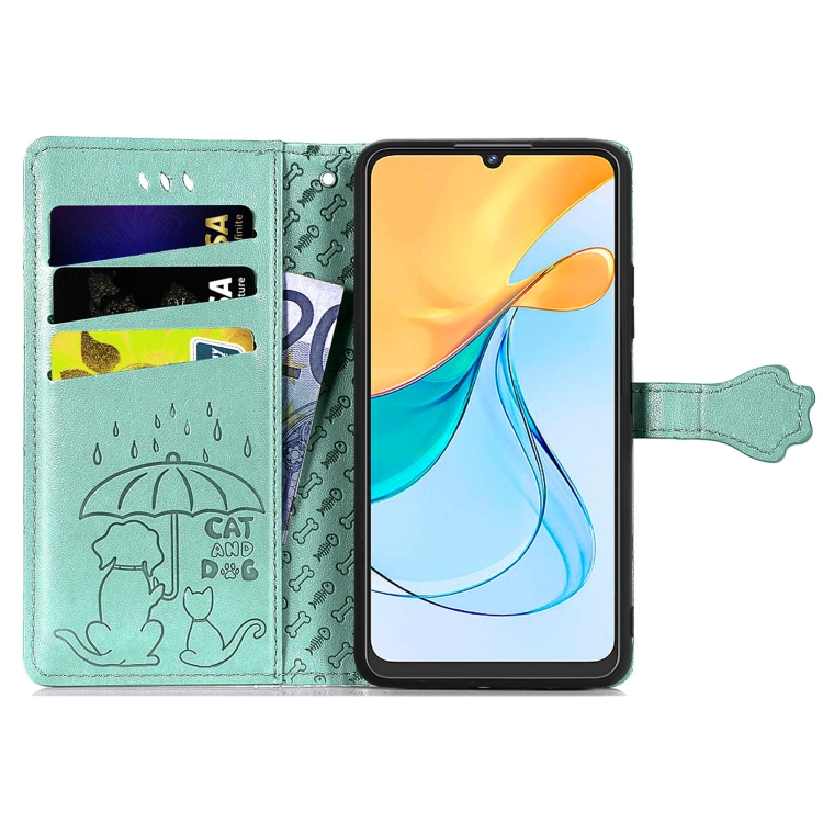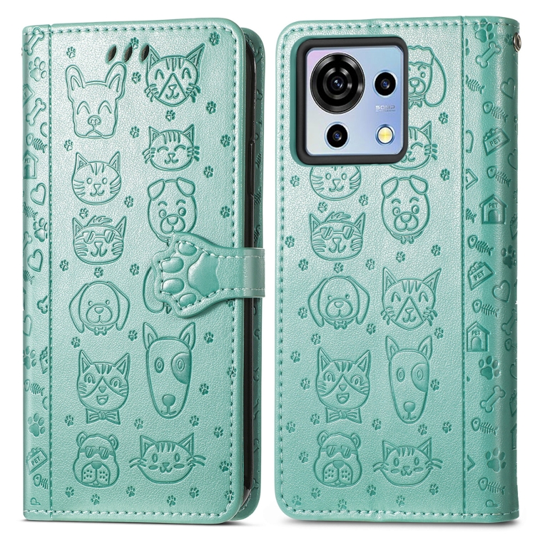 Funda para ZTE Blade V50 Vita de Cuero con Relieve de Gato y Perro (Verde)