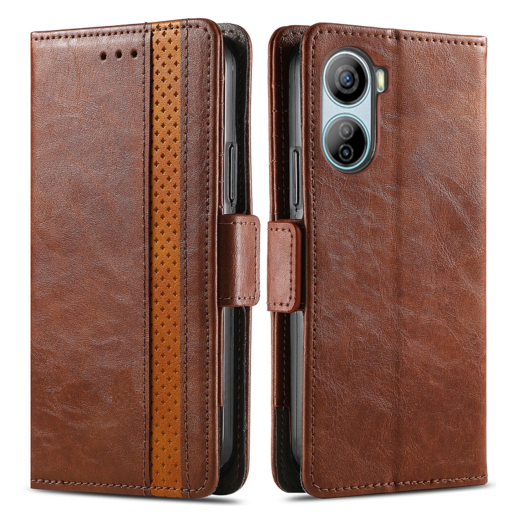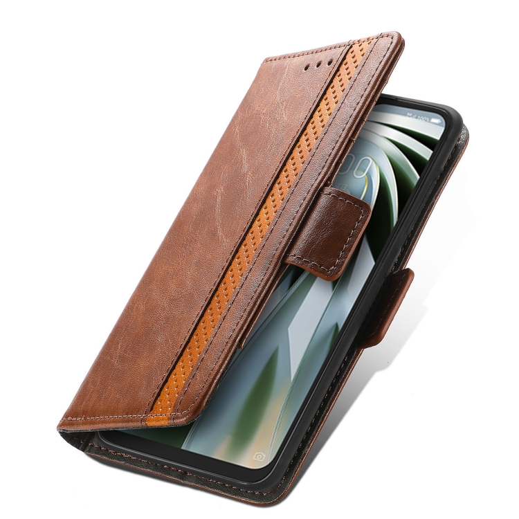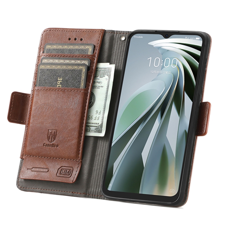 Funda de Cuero Caseneo para ZTE Libero 5G Iv con Hebilla Magnética Dual (Marrón)