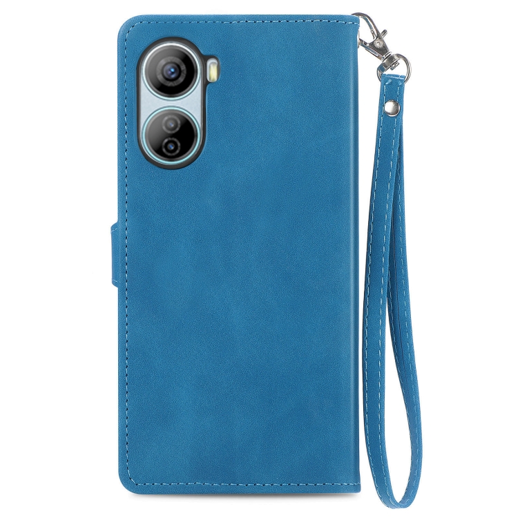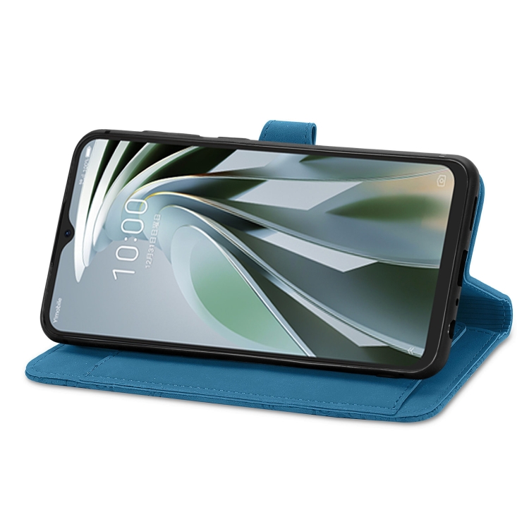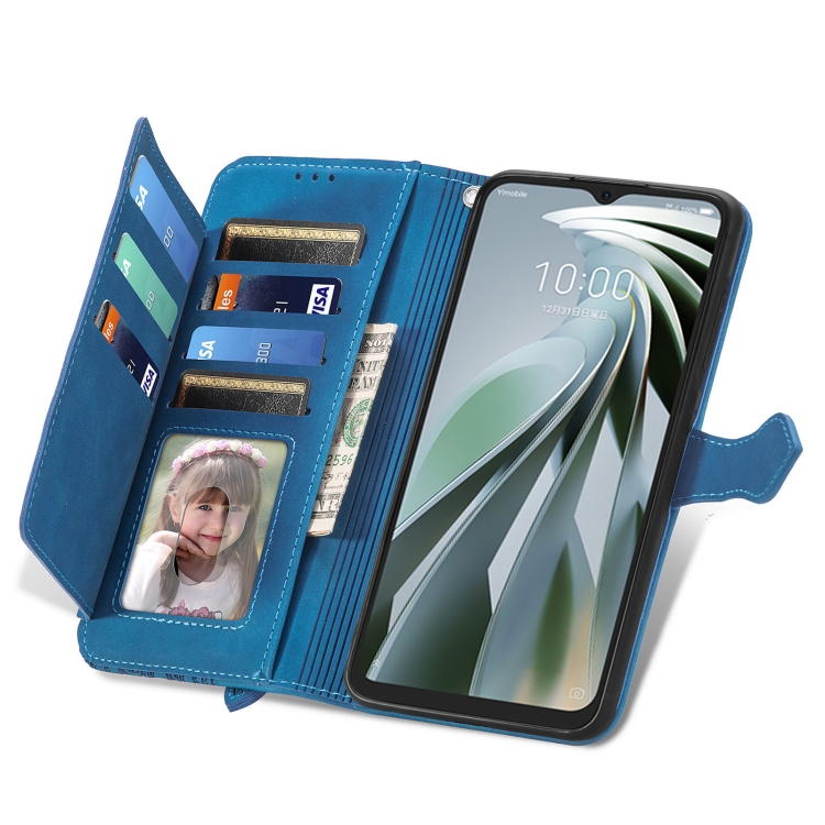 Funda de Cuero para ZTE Libero 5G Iv con Cremallera y Flor en Relieve (Azul)