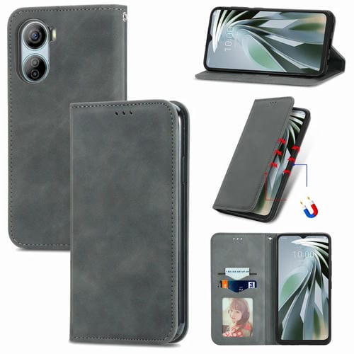 Funda de Cuero Magnético para ZTE Libero 5G Iv con Sensación de Piel Retro (Gris)