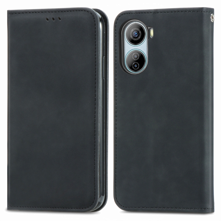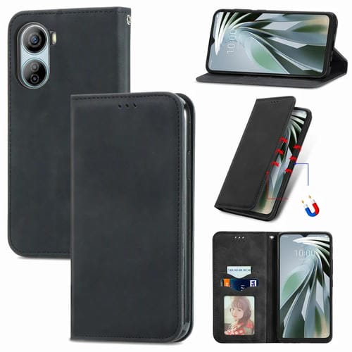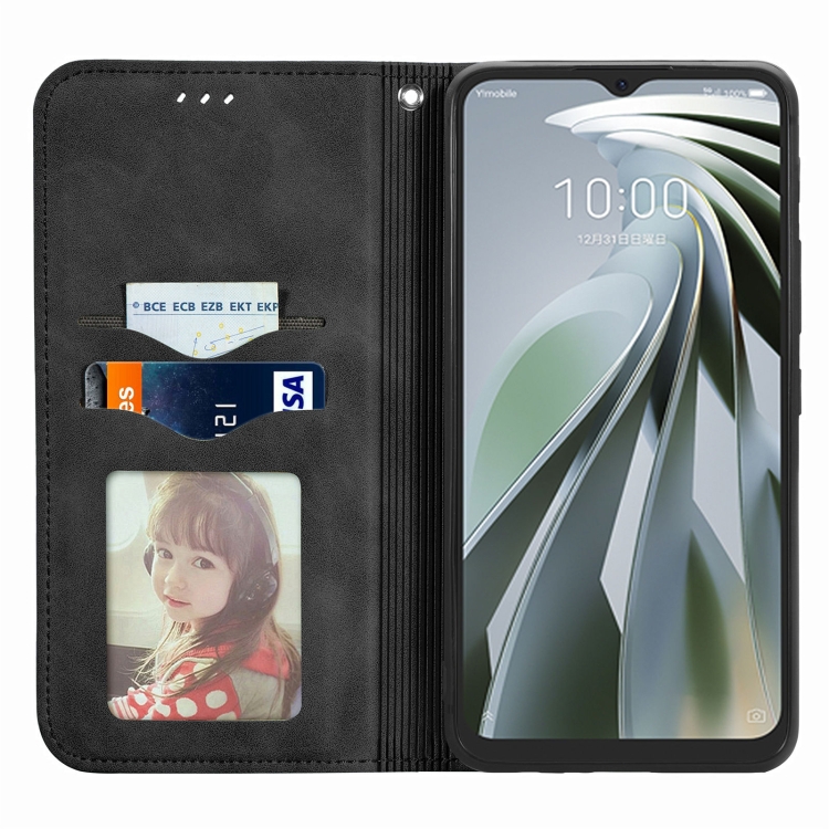 Funda para ZTE Libero 5G Iv Cuero Magnético con Sensación de Piel Retro (Negro)
