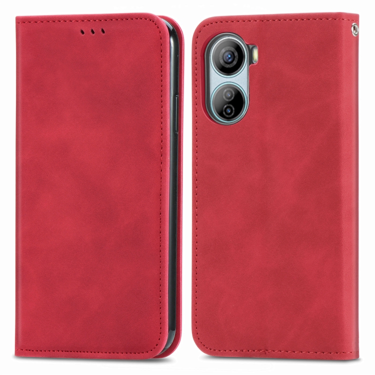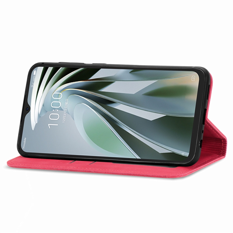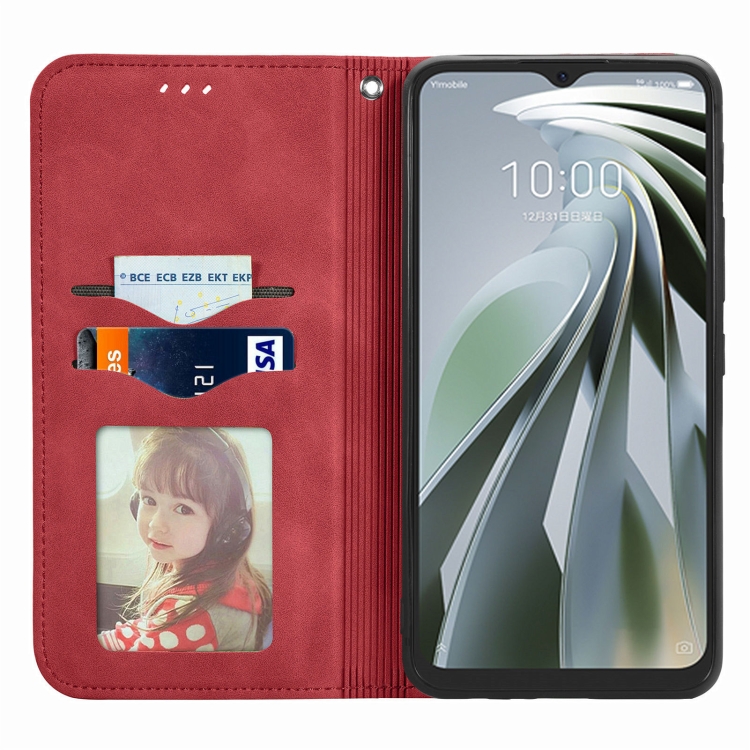 Funda de Cuero Magnética para ZTE Libero 5G Iv con Sensación de Piel Retro (Rojo)