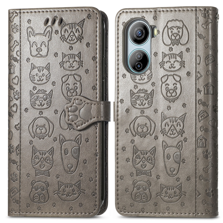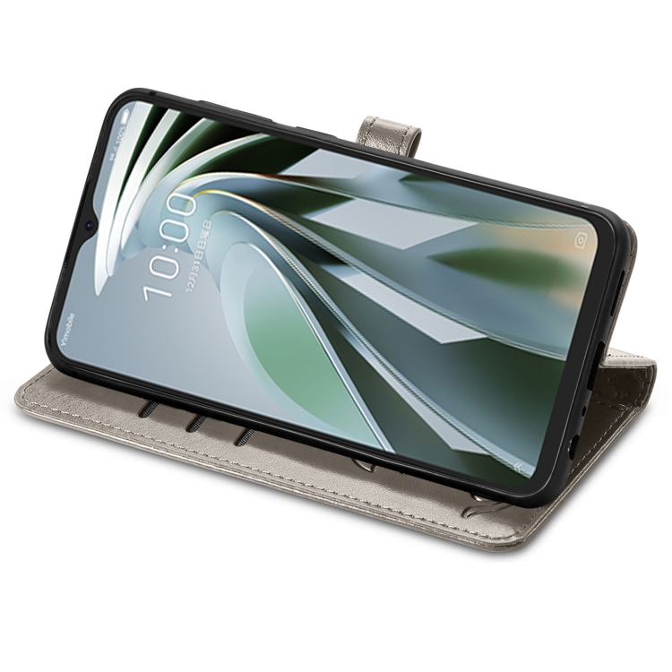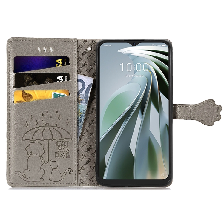 Funda para ZTE Libero 5G Iv de Cuero con Relieve de Perro y Gato (Gris)
