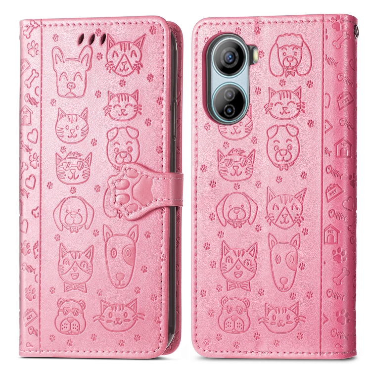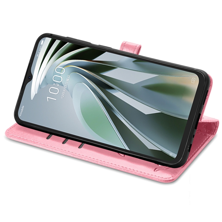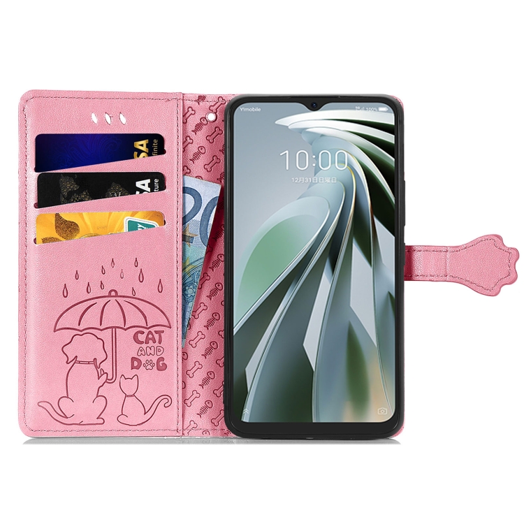 Funda para ZTE Libero 5G Iv Cuero con Relieve de Perro y Gato (Rosa)