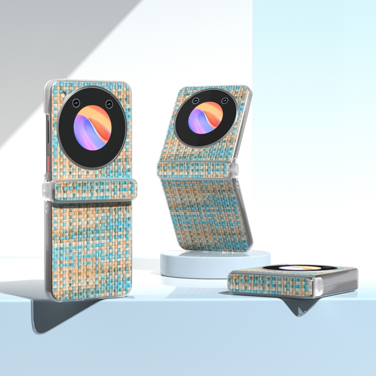 Caja de teléfono PU para ZTE Nubia Flip 3 con marco translúcido esmerilado y textura rómbica (Azul)