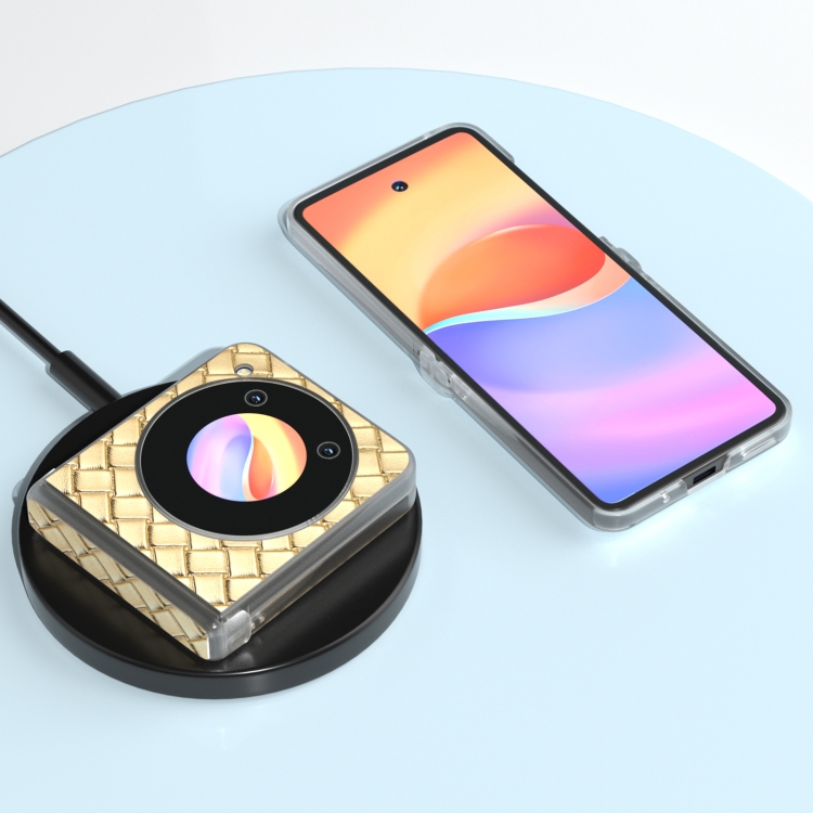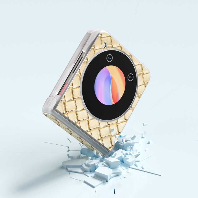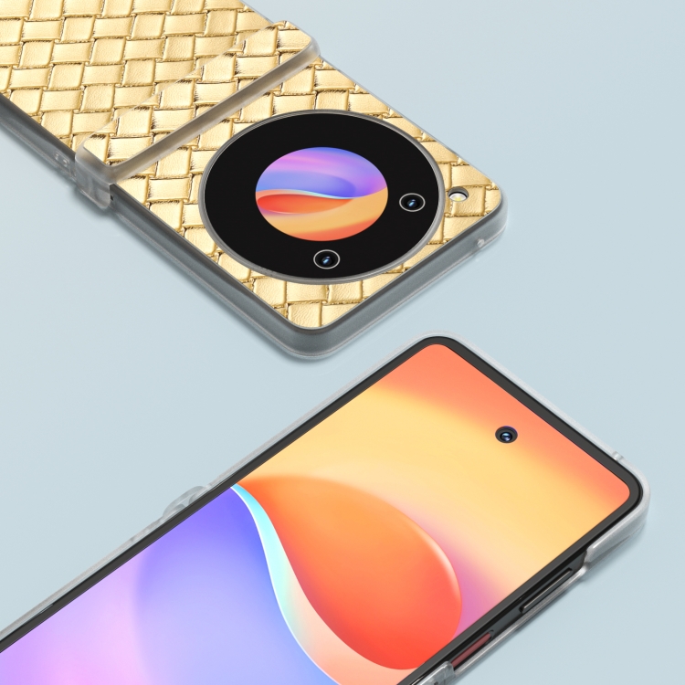 Funda 3 en 1 para ZTE Nubia Flip de PU con Marco Translúcido Esmerilado y Textura Tejida (Dorado)