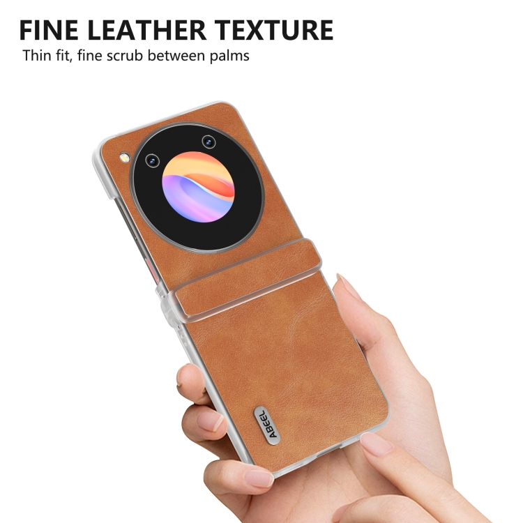 Funda de Teléfono ZTE Nubia Flip Abeel Bisagra Marco Transparente Esmerilado PU Textura Becerro Dos Colores (Marrón)