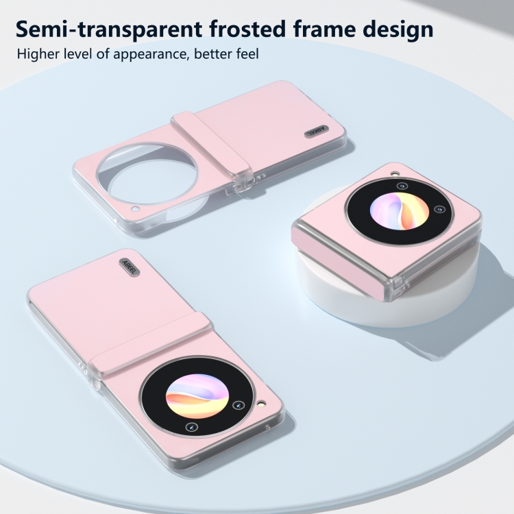 Funda para ZTE Nubia Flip Abeel bisagra marco transparente esmerilado PU textura becerro dos colores (Rosa)