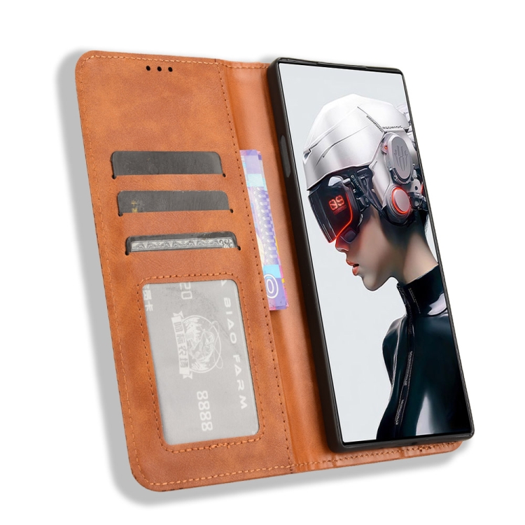 Funda para ZTE Nubia Red Magic 9 Pro de Cuero con Textura Retro y Hebilla Magnética (Marrón)