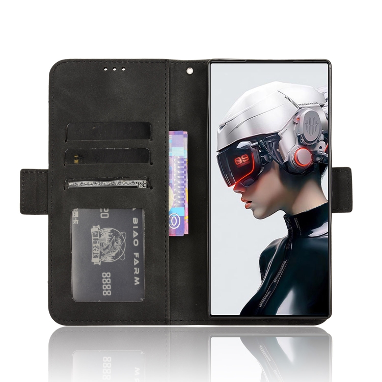 Funda de Cuero para ZTE Nubia Red Magic 9 Pro+ con Ranuras para Tarjetas y Textura Skin Feel Calf (Negro)