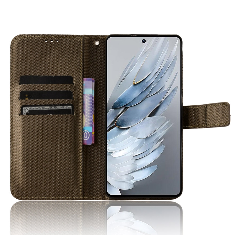 Funda de Cuero para ZTE Nubia Z50S Pro con Textura de Diamante (Marrón)