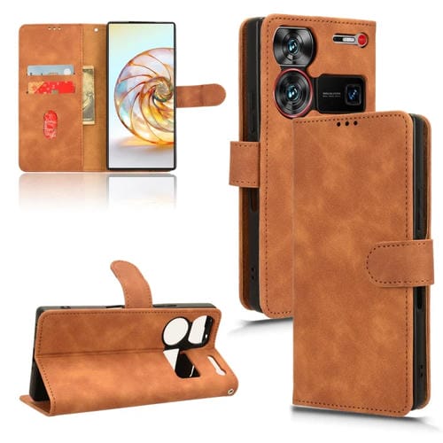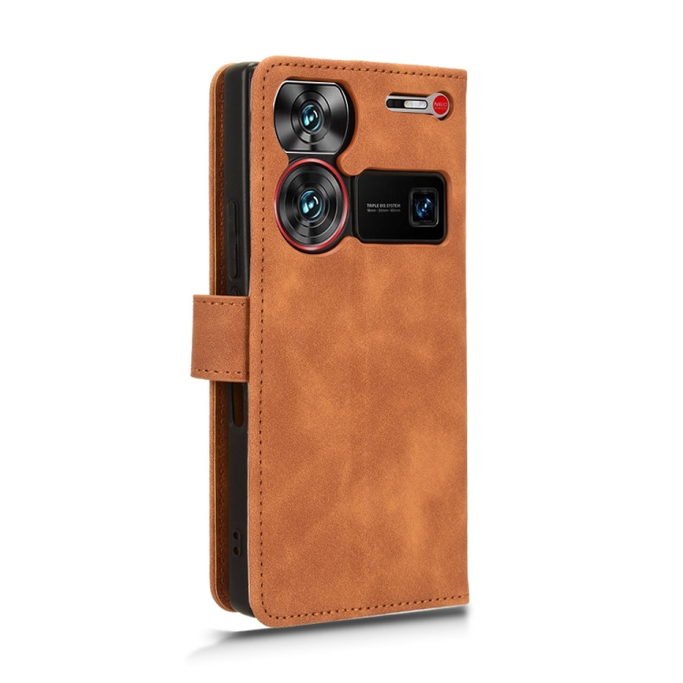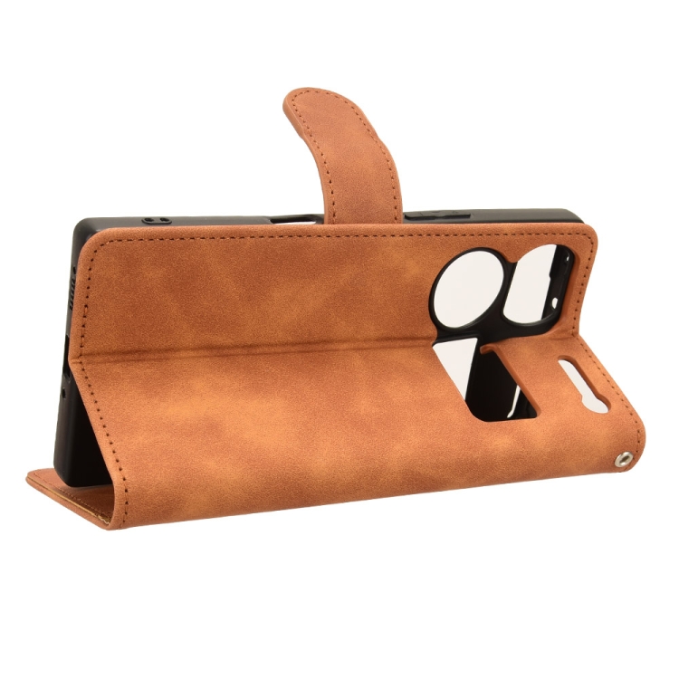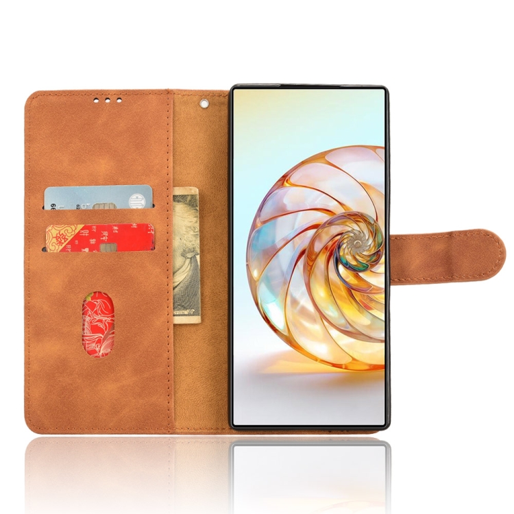 Funda de Cuero con Tapa Magnética para ZTE Nubia Z60 Ultra (Marrón)