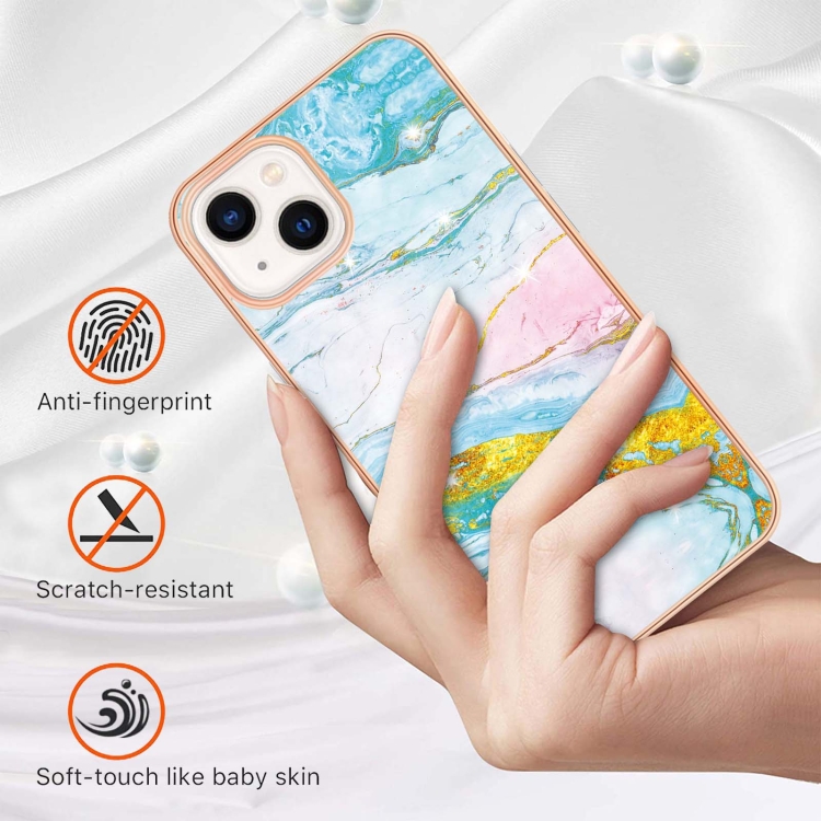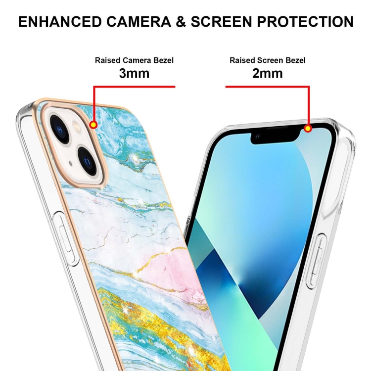 Caja de Teléfono iPhone 15 Plus Patrón Mármol Galvanoplastia Imd TPU Doble Cara (Verde)