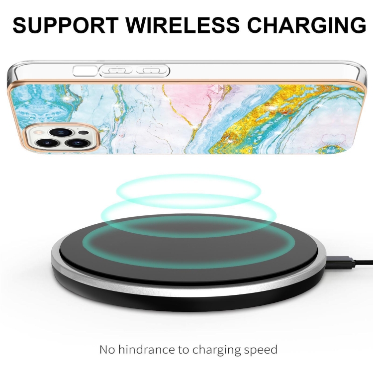 Caja de Teléfono iPhone 15 Pro Max Patrón Mármol Galvanoplastia TPU Doble Cara (Verde)