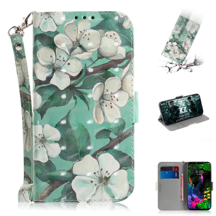 Funda de Cuero LG G8 Thinq con Patrón 3D, Tapa Horizontal, Soporte y Billetera (Flor de Acuarela)