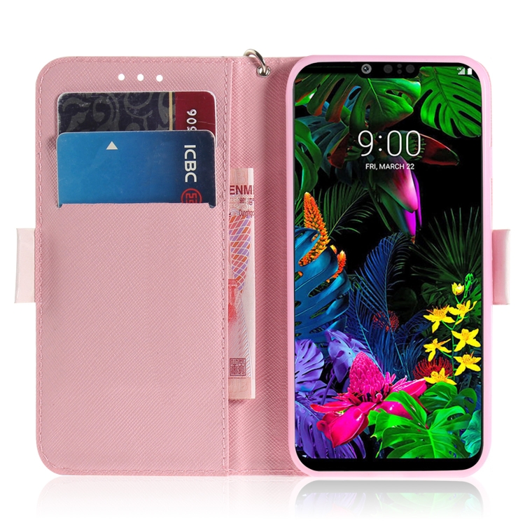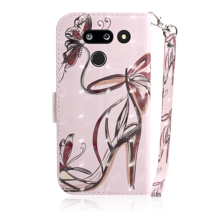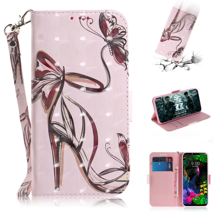 Funda de Cuero LG G8 Thinq con Patrón 3D, Tapa Horizontal, Soporte, Ranuras y Billetera (Tacones de Mariposa)