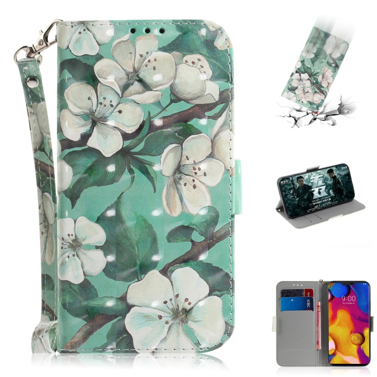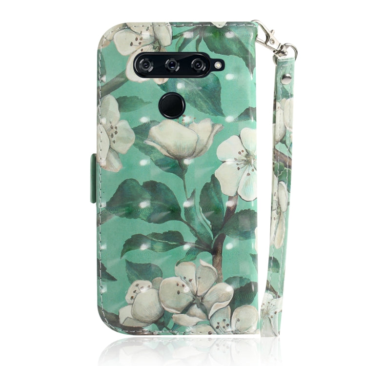 Funda de Cuero LG V40 Thinq con Patrón 3D Flor de Acuarela, Tapa Horizontal, Soporte y Ranuras para Tarjetas