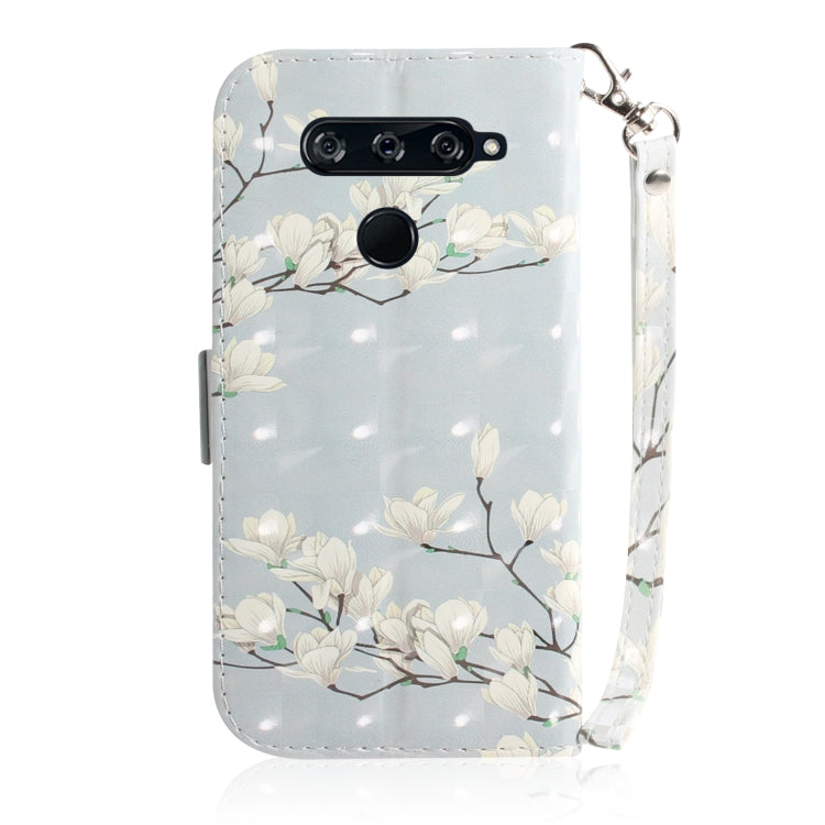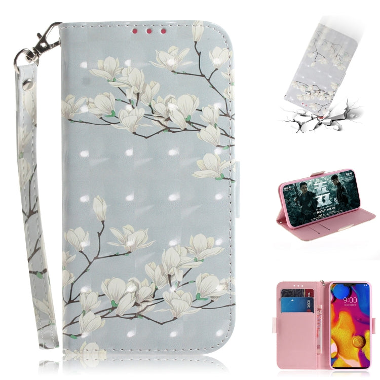 Funda de Cuero con Tapa Horizontal y Soporte para LG V40 Thinq (Mognolia) con Patrón 3D Dibujo a Color