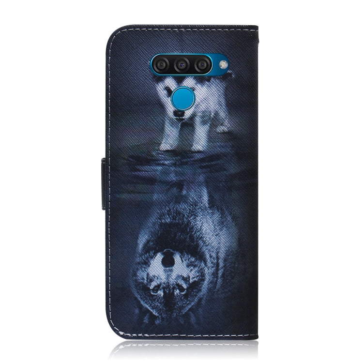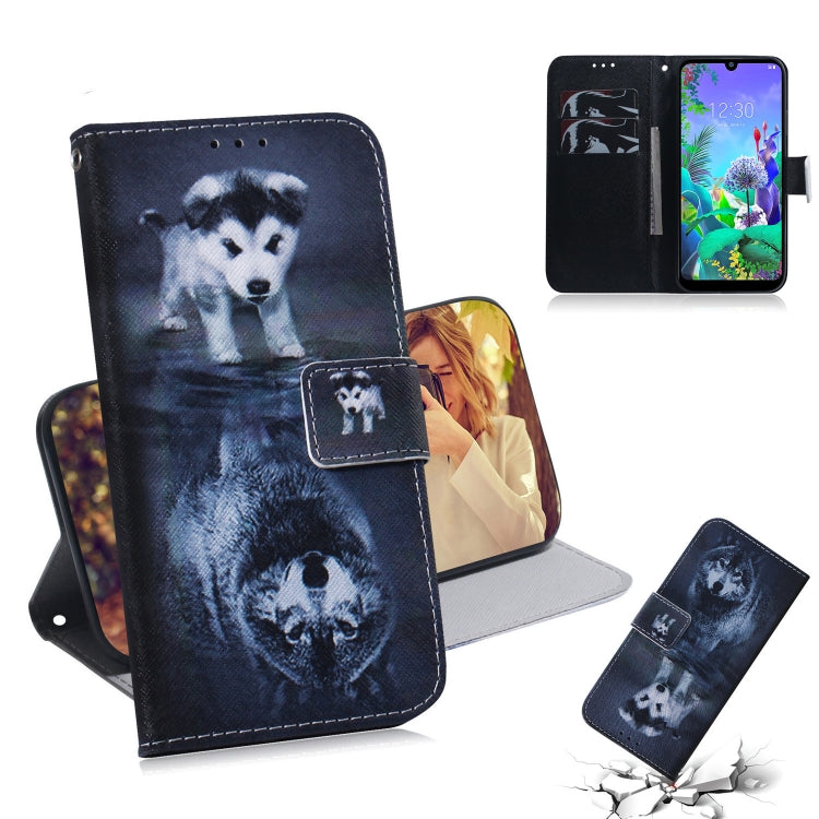 Funda de Cuero LG Q60 con Tapa Horizontal, Soporte, Ranuras para Tarjetas y Billetera (Lobo y Perro)