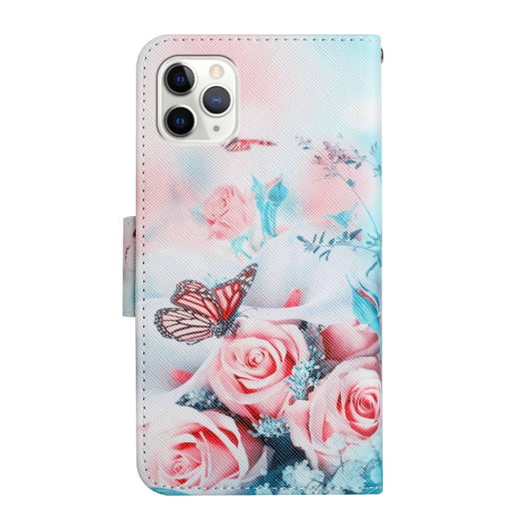 Funda de Cuero Horizontal para iPhone 11 Pro Patrón Pintado Soporte Ranura para Tarjeta y Billetera (Mariposa de Peonía)