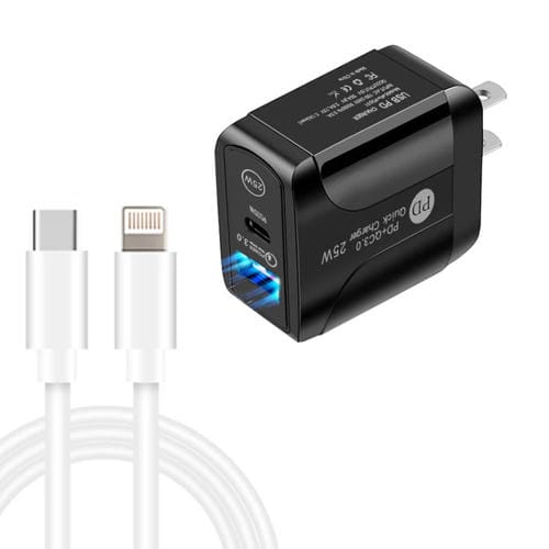 Cargador Dos Puertos Pd25W Usb-C Typ-C y Qc3.0 con Cable Usb-C a 8 Pin (Negro)