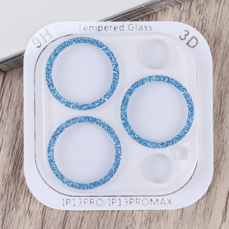 Película de Lente de Cámara Vidrio Templado con Anillo Brillante para iPhone 15/15 Plus (Azul)