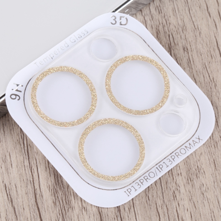 Película de Lente de Cámara Vidrio Templado con Anillo Brillante para iPhone 15/15 Plus (Dorado)