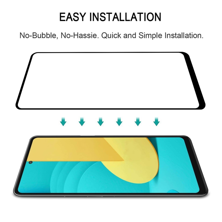 3. Alinee cuidadosamente el vidrio a la pantalla.