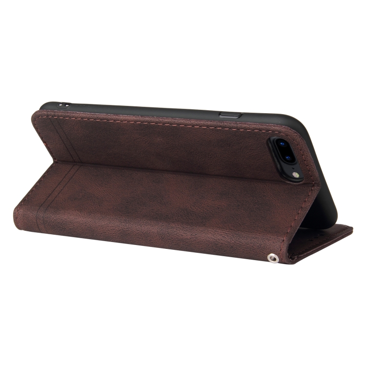 Funda de Cuero Fee Life Tree para iPhone 8 Plus / 7 Plus con Soporte, Ranura para Tarjeta, Billetera, Marco y Correa de Fotos (Brown)