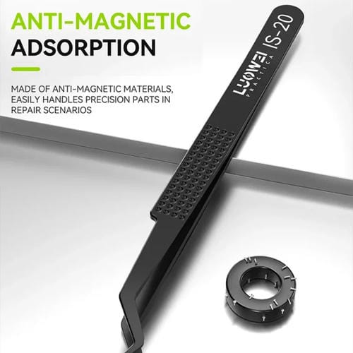 Las pinzas para plantar estaño Luowei IS-20 con hilo de vuelo de alta precisión son una herramienta especializada diseñada para trabajos de reparación electrónica y manejo de Piezas pequeñas. Este modelo es compatible con aplicaciones en Placas de circuito, dispositivos Digitales y componentes de precisión donde se requiere posicionar y sujetar con exactitud el hilo de estaño durante procesos de soldadura. Su función principal es facilitar el posicionamiento estañado en espacios reducidos, permitiendo un control óptimo en reparaciones Técnicas que demandan alta precisión y delicadeza.