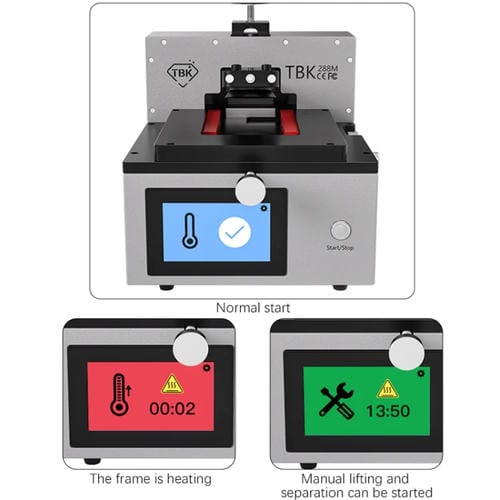 - Voltaje: 110V/220V; Potencia: 400W; Dimensiones: 32x24x29 cm; Control automático PLC; Función de calentamiento del Marco con temperatura constante; Ventosas de vacío superiores e inferiores para sujeción estable; Control manual de elevación ajustable; Función antidemolición y detección de Pantalla rota integrada