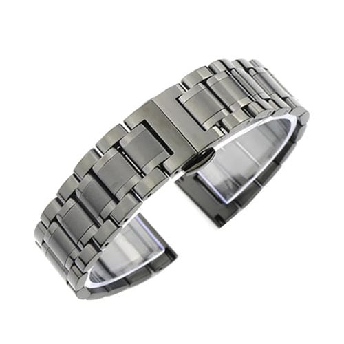 Pulsera de Acero 24mm Unisex Hebilla de Mariposa Correa de Reloj Sólida (Negro)