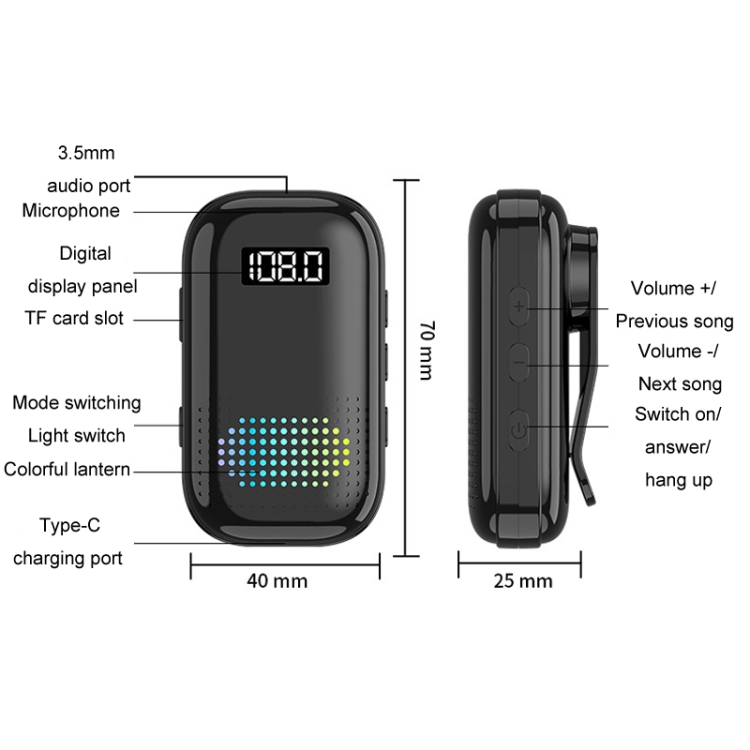 7. Diseño de pantalla digital, pantalla de volumen, pantalla de energía, visualización del número de tarjeta de memoria, canales de radio FM, diferentes modos de visualización de un vistazo