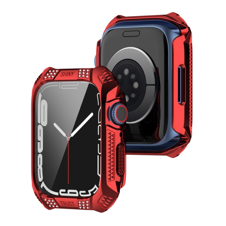 Rhombus Belt Drill + Estuche Integrado de Película Templada para Apple Watch Series 8/7 41mm (Rojo)
