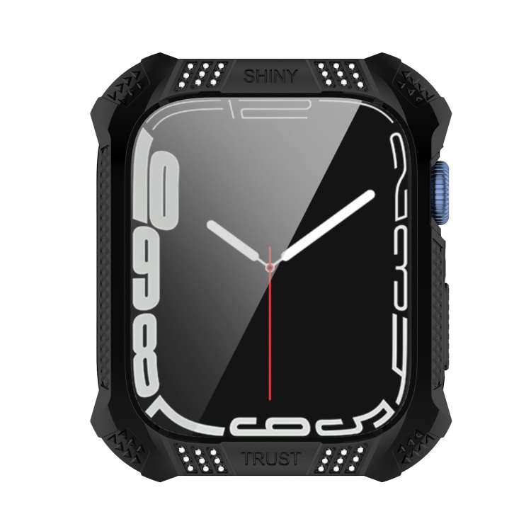 Rhombus Belt Drill + Estuche con Película Templada para Apple Watch Series 8/7 45mm (Negro)