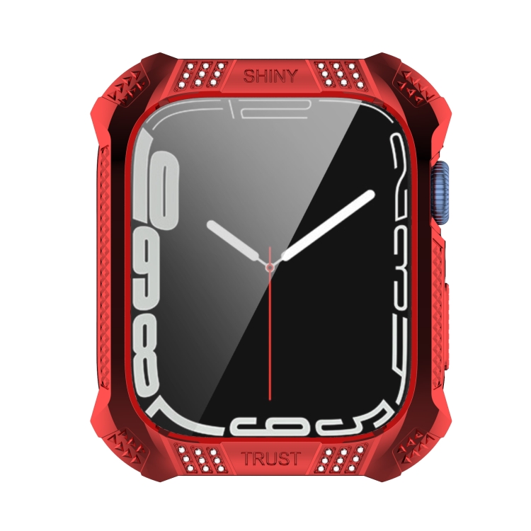 Rhombus Belt Drill con Estuche y Película Templada para Apple Watch Series 8/7 45mm (Rojo)