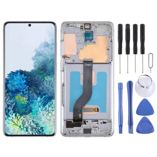 • 1x Pantalla Completa + OLED Digitalizador con Marco para Samsung Galaxy S20+ 4G/5G (Gris)