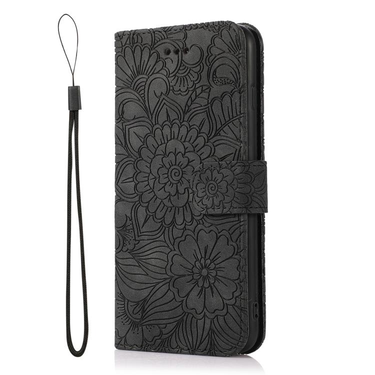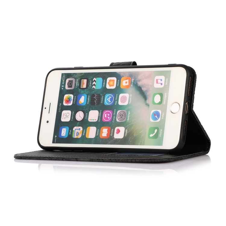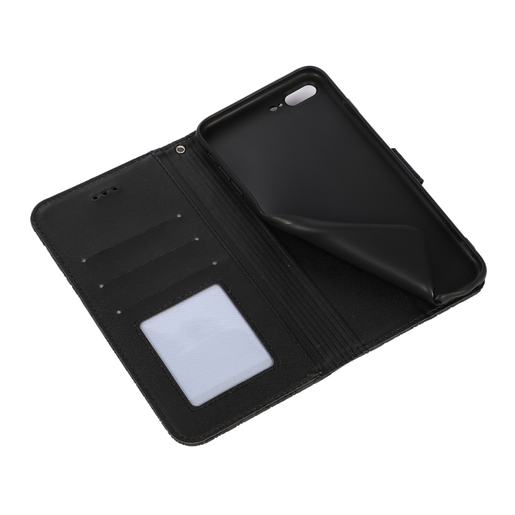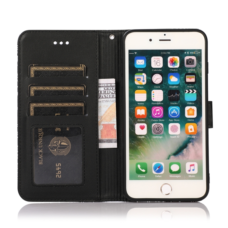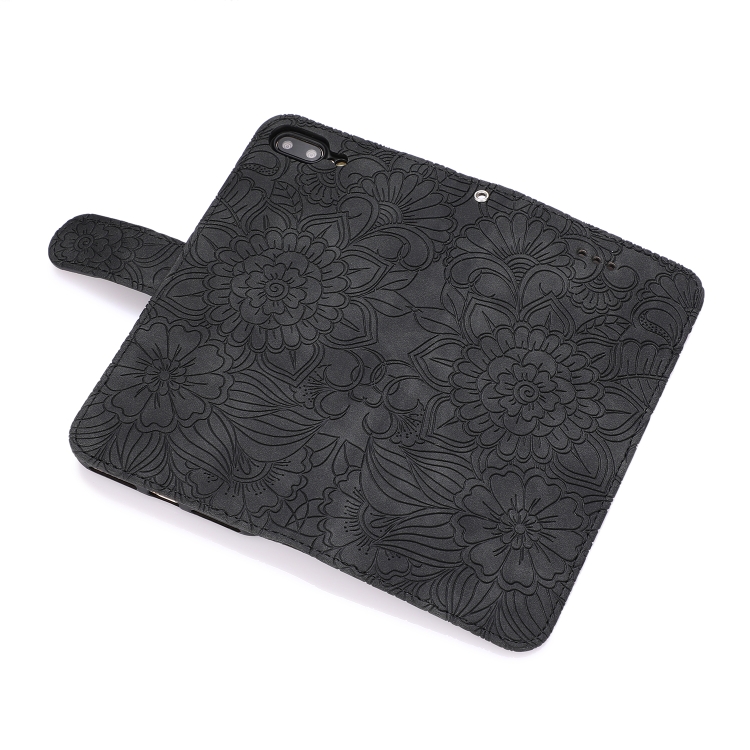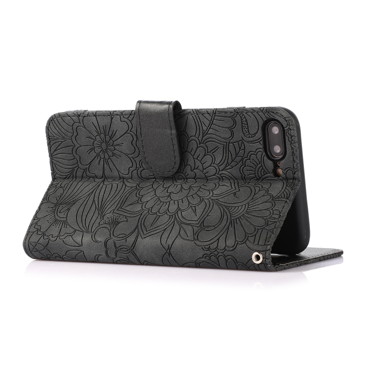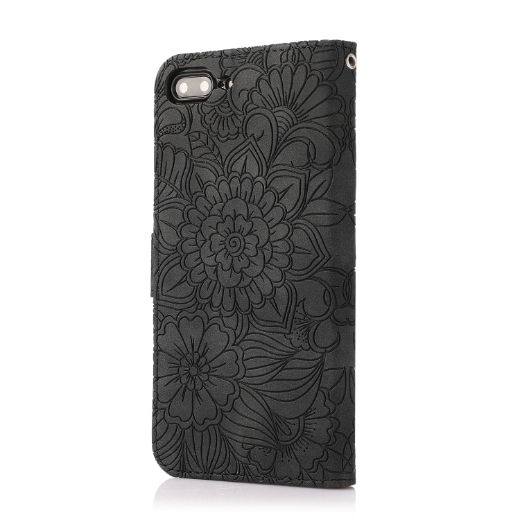 Funda de Cuero Siente la Piel Girasol en Relieve Horizontal con Soporte Ranuras Tarjetas Billetera y Cordón para iPhone 7 Plus / 8 Plus (Negro)