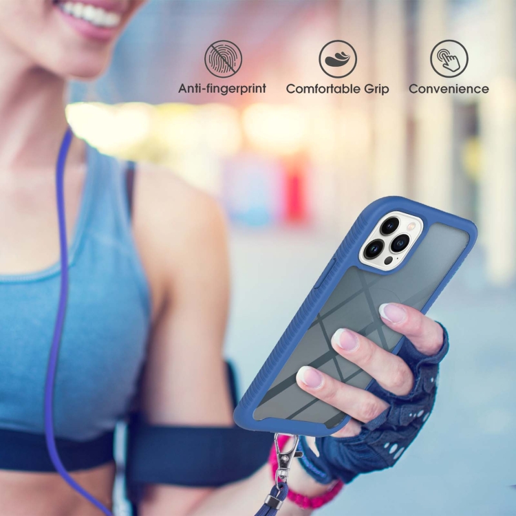 Funda para Teléfono Starry Sky Solid Color Series PC + TPU a Prueba de Golpes con Correa para El Cuello para iPhone 14 Pro (Azul)