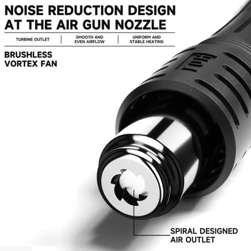 • Pantalla Digital LED dual de alta definición para visualización simultánea de temperatura y velocidad del viento; ventilador de vórtice sin escobillas de larga vida útil y bajo nivel de ruido; tecnología inteligente de arranque y parada con interruptor magnético; pistola de aire caliente con elemento calefactor de alta calidad y fácil reemplazo