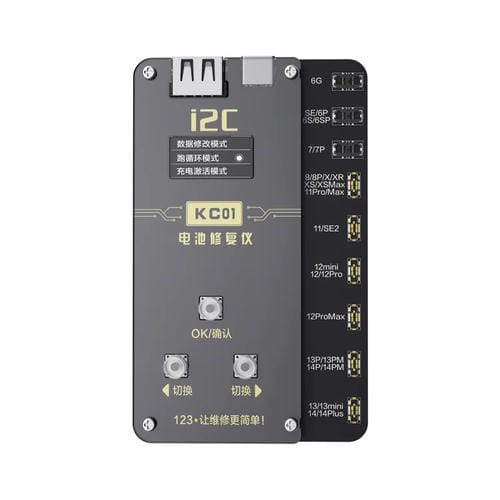 El Instrumento de Reparación Integral Multifunción I2C KC01 es una herramienta especializada diseñada para la reparación y mantenimiento de Baterías en dispositivos Apple iPhone, compatible con modelos desde iPhone 6 hasta iPhone 14 Pro Max. Esta versión estándar permite la lectura y escritura de datos en la parte inferior de la Batería, facilitando la modificación del estado y número de ciclos, así como la optimización automática de la eficiencia del ciclo de funcionamiento. Su función principal es proporcionar una Carga eficiente y rápida sin causar daños al componente, alcanzando hasta un 65% de Carga en 30 minutos. Además, soporta actualizaciones de software en línea ilimitadas y operaciones tanto en línea como fuera de línea, con monitoreo en tiempo real del voltaje y Corriente de Carga para un control preciso durante el proceso de reparación.