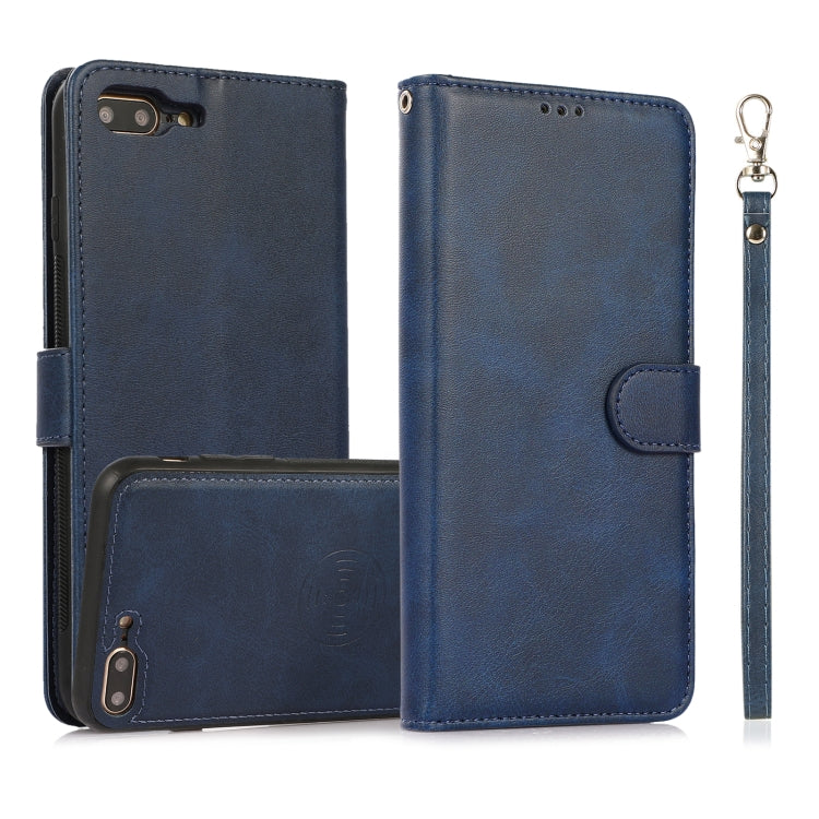 Funda de Cuero 2 en 1 iPhone 8 Plus 7 Plus Cubierta Magnética Flip Horizontal (Azul)