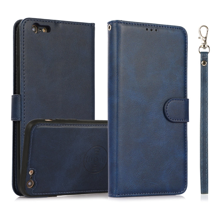 Funda de Cuero 2 En 1 Textura de la Pantorrilla para iPhone 6S / 6 con Soporte y Ranuras (Azul)